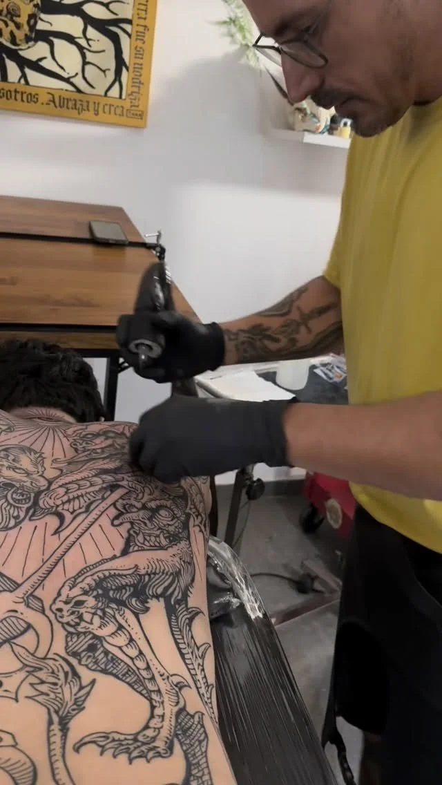 “Me impresionó el nivel de profesionalismo con el que Than llevó nuestro proyecto. Desde el principio me trató con respeto, escucha y mostró gran sensibilidad con mis ideas. No sólo tiene un trazo maduro, decidido y cuidadoso, también aplica sus conocimientos en composición y anatomía. Siempre le agradeceré a Than haberme tatuado una pieza tan significativa para mí”