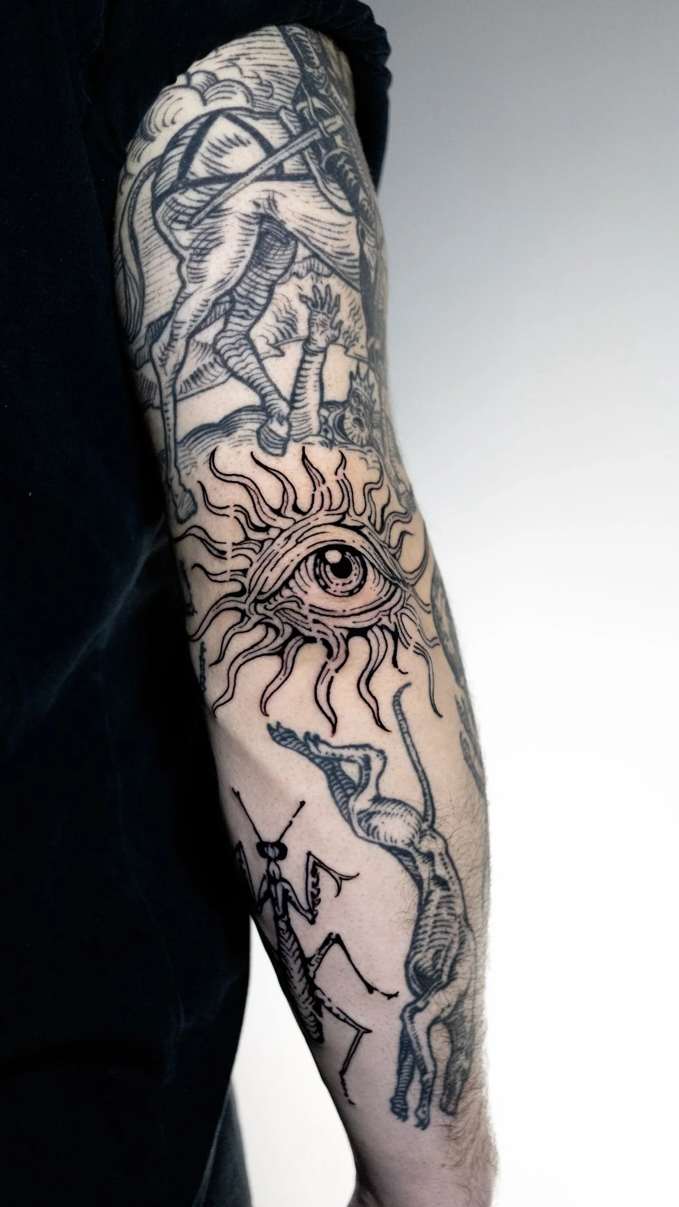 “Conocí el arte de Than a través de sus pinturas, fascinado por cómo distorsiona la realidad. Al descubrir que empezó a tatuar, no dudé en llevar su arte a mi piel. ¡Su técnica en grabado es increíble! Ahora llevo su arte para siempre.